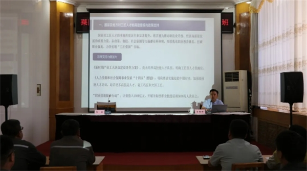 为深化产业工人队伍建设改革,充分发挥“莱阳工匠”示范引领和典型带动作用,近日,莱阳市产改培训会议暨梨乡工匠学院工匠培训正式开班,会议邀请烟台职业学院智能制造系主任、教授宫晓峰授课,80余名工匠和企业职工代表参与培训。
