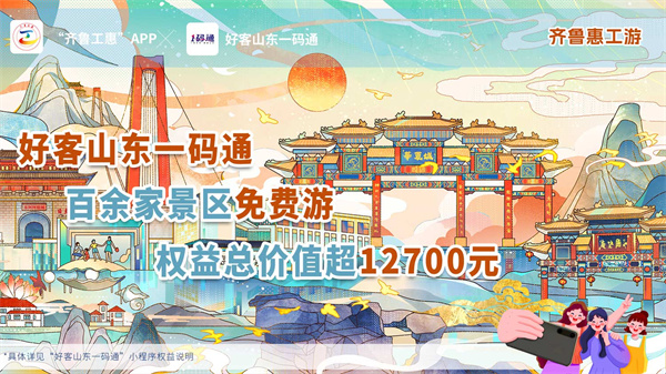 为深入贯彻落实《山东省工会加大工会经费投入力度助力职工文化旅游消费的若干措施》,进一步激发文旅市场活力,提升职工生活品质,山东省总工会开展“齐鲁惠工游”主题活动。活动期间,基层工会可按规定使用工会经费,为职工购买并发放“好客山东一码通”旅游年票,积极推动职工文旅消费。