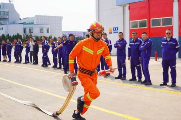 大赛在单兵抢险应急救援项目实操比赛中拉开帷幕。该项目通过障碍物破拆、搬运软体假人、水龙带搭接三个环节,全面检验港口应急救援人员的综合素质能力。比武现场,决赛选手根据抽签顺序依次登场竞技。比赛开始后,选手迅速穿装备破铁门,如离弦之箭般冲向软体假人,一把将其抱起,脚步飞快地奔向指定安全区域,尽管“假人”重量不轻,但他们咬牙坚持,每一个动作都彰显着力量与决心,接水龙带时,专注灵动,快速准确完成连接,动作一气呵成,尽显救援实力。