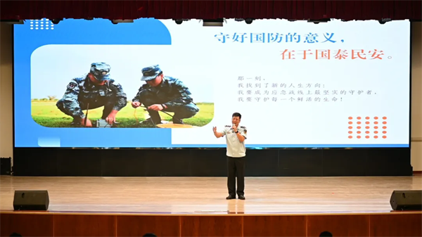 本次大赛以“爱我国防”为主题,吸引了来自全市各级党政机关和企事业单位的干部职工、师生踊跃参与。在决赛舞台上,退役老兵刘兵以《国防之光:闪耀在平凡的坚守中》为题,以亲身经历动情分享脱下军装不褪本色,在各自岗位上继续发光发热、播撒国防情怀的动人实践,展现了军魂传承的永恒力量。选手初晋宇、程鹏则紧扣主题、配合默契,以《永恒的追寻》为题,凭借饱含深情的语言诠释了“关心国防、热爱国防、建设国防、保卫国防”的深刻内涵。两组选手通过真实的故事、生动的语言与真挚的情感,深深打动了在场观众,赢得了阵阵热烈掌声。
