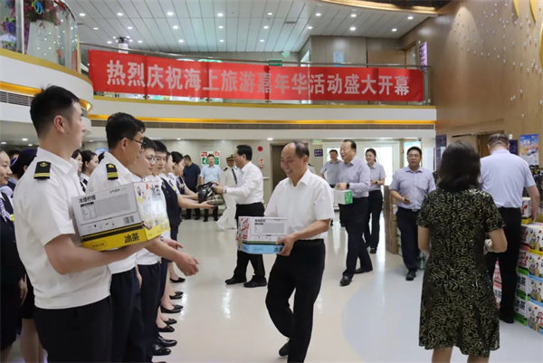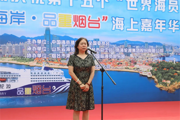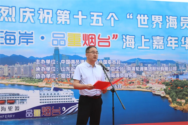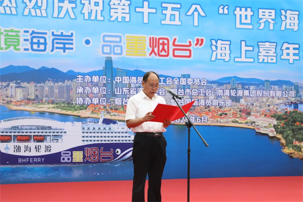 6月24日,庆祝“世界海员日”暨“仙境海岸?品重烟台”海上旅游嘉年华活动在烟台启动。启动仪式上,中国海员建设工会全国委员会二级巡视员朱嫣红,山东省海员工会主席吴玉川,烟台市总工会党组书记、常务副主席陈海涛出席活动并讲话。