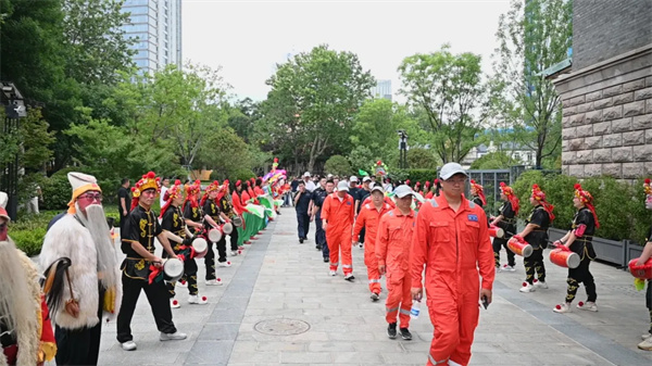 随后,中外海员代表走进烟台张裕酒文化博物馆,深入了解中国民族工业实业救国和崛起历程。在非遗展区,大家共同欣赏了热闹欢快的海阳大秧歌表演。这场“看百年张裕,赏海阳秧歌”的文化之旅,丰富了海员们的精神文化生活,让海员们沉浸式感受了烟台的魅力与热情。