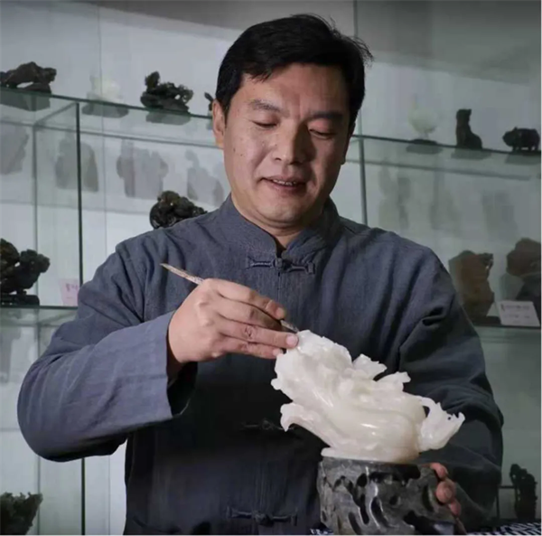 杨国智,莱州市老石匠玉雕工作室工艺品雕刻工,莱州玉雕烟台市代表性传承人。先后荣获山东省级村优秀人才、齐鲁文化之星、第七届“莱州工匠”等荣誉。