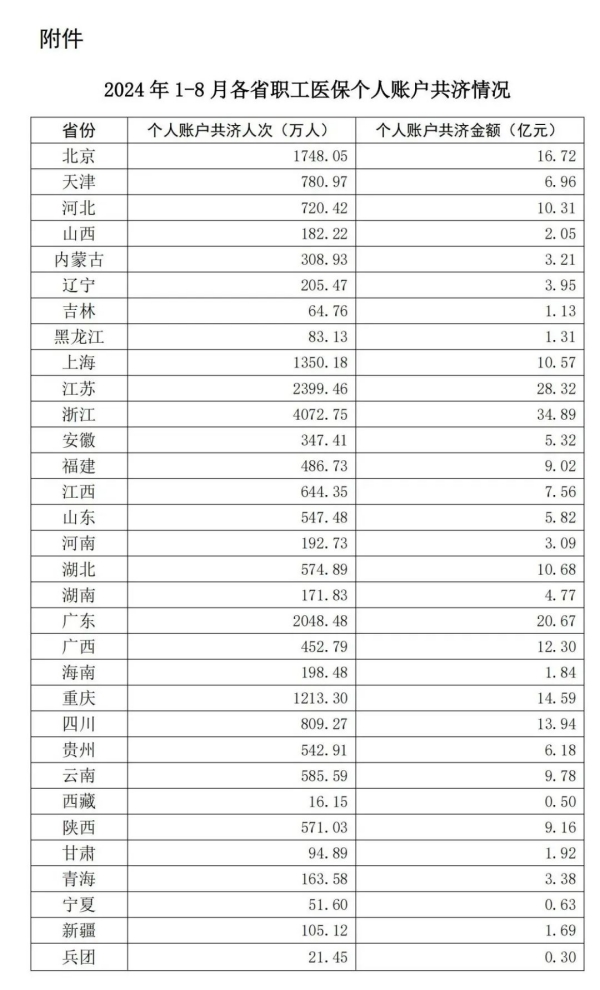 附件:2024年1~8月各省职工医保个人账户共济情况